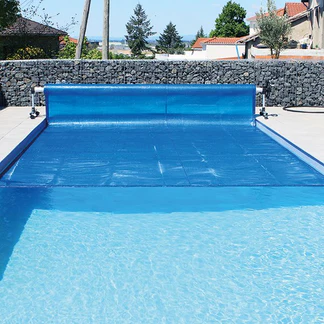 L’enrouleur de bâche vous permet de ranger facilement votre bâche à bulles. Que ce soit pour la pose et pour la retirer du bassin, cet équipement de confort facilitera grandement cette manipulation. L’enrouleur va offrir la possibilité à votre bâche de ne pas être exposée de manière permanente aux UV, aux intempéries et aux agents désinfectants tel que le chlore, le pH et le sel. Durant la journée, votre bâche sera autour de l’enrouleur et donc à l’abri de tous ces éléments extérieurs réduisant la durée de vie de votre couverture. Le soir venu vous pourrez en quelques secondes recouvrir votre piscine très facilement et ainsi conserver sa chaleur et sa propreté pour le lendemain matin.
